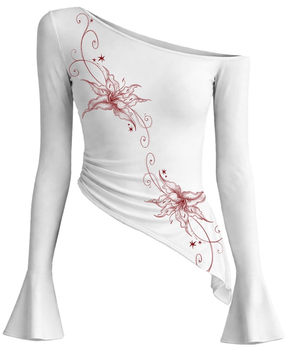Biała, bawełniana bluzka z nadrukiem Lilies z przodu oraz Spark z tyłu