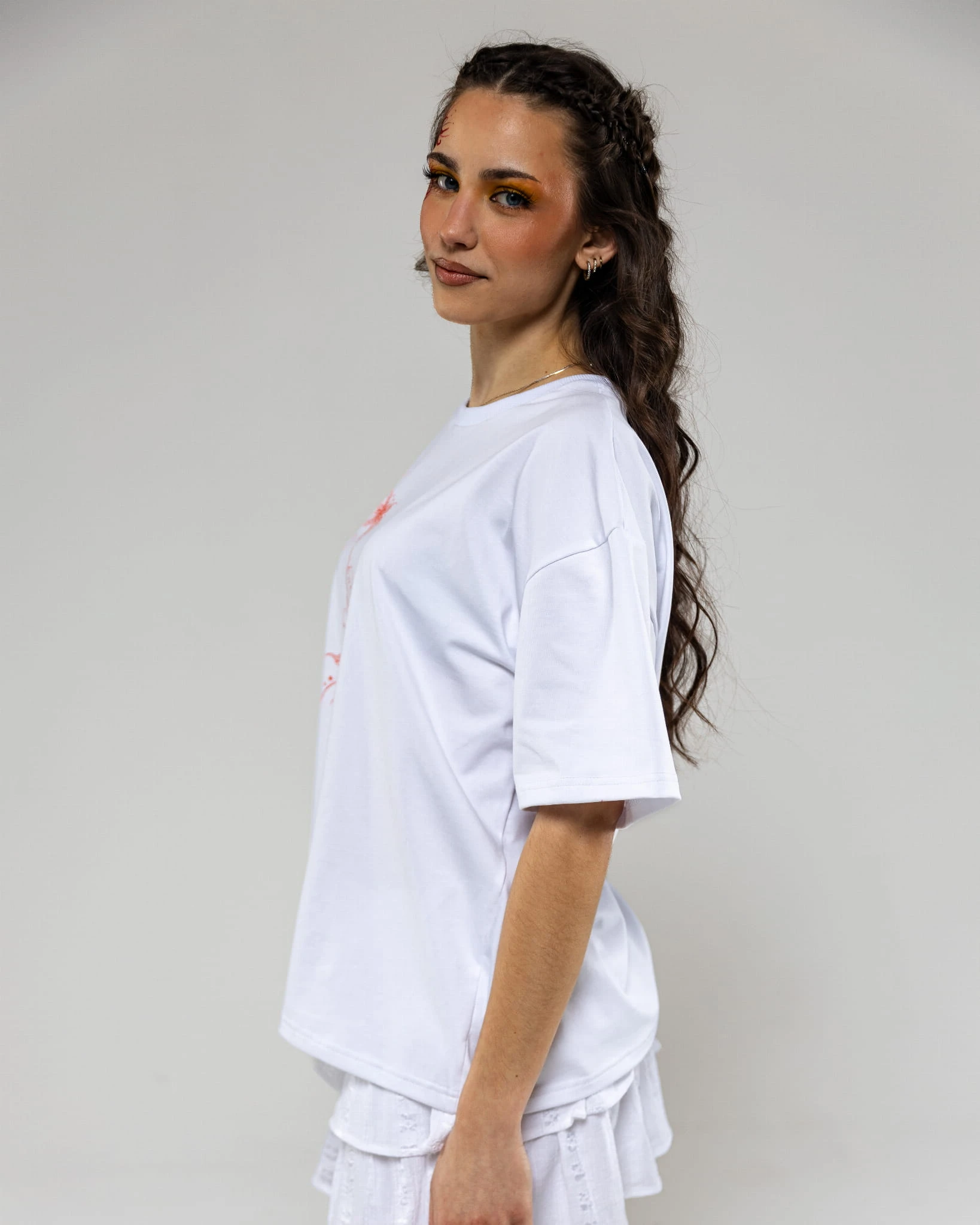 Biała, bawełniana koszulka z nadrukiem Lily-Ornaments z przodu